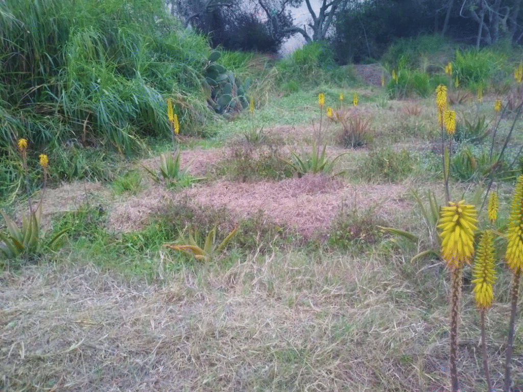 Para la limpieza de los canales y el desyerbado de las sábilas se ha coordinado con unos vecinos que tienen cabras y estas han hecho su tarea muy eficientemente. Vemos cómo quedó el campo de sábilas luego de su eficiente trabajo.